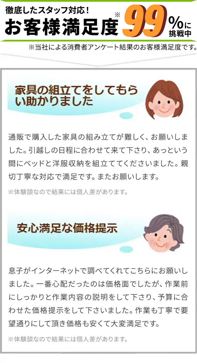 便利屋ヘルパー隊では、最短で即日対応しているので、すぐに見積もりを出して作業に入ることができます。もちろん、しっかりと説明して納得してから作業に入っていくため、安心して依頼することが可能です。